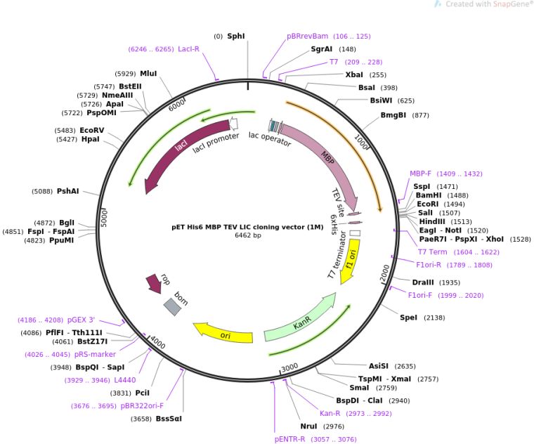 质粒名称:pET His6 MBP TEV LIC cloning vector (1M)