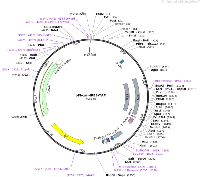 质粒名称:pFloxin-IRES-TAP