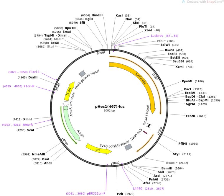 基因突变:Contains the murine Hes1 promoter (-467 to +46)
