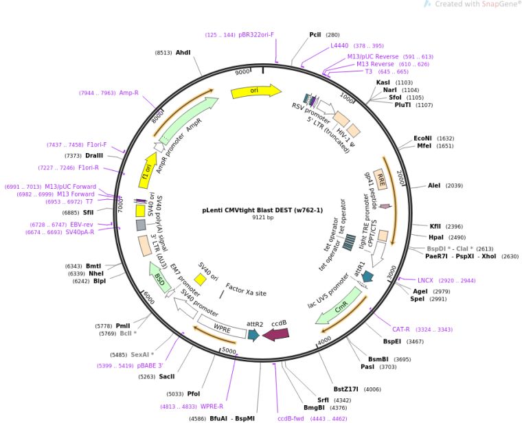 质粒名称:pLenti CMVtight Blast DEST (w762-1)