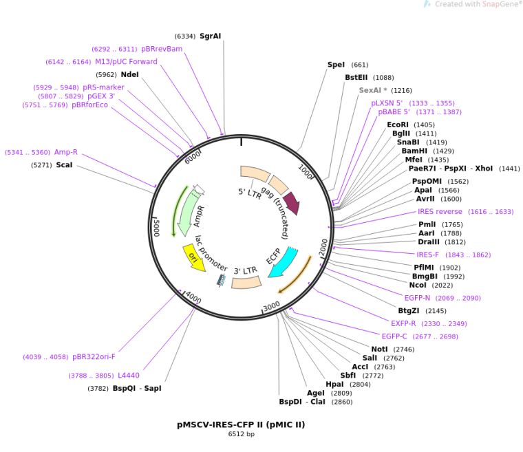 质粒名称:pMSCV-IRES-CFP II (pMIC II)