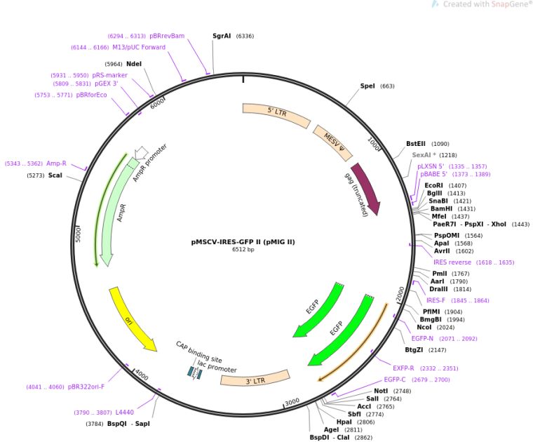 质粒名称:pMSCV-IRES-GFP II (pMIG II)