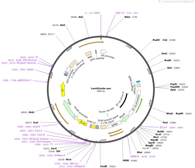 质粒备注:(Empty Backbone) Expresses S. pyogenes CRISPR chimeric RNA element with customizable sgRNA from U6 promoter and zeocin resistance marker
