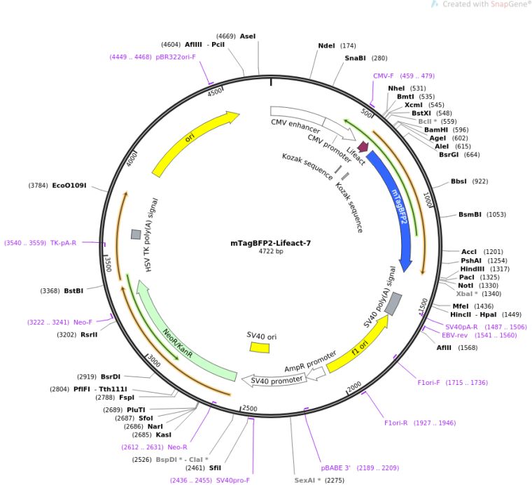 质粒名称:mTagBFP2-Lifeact-7