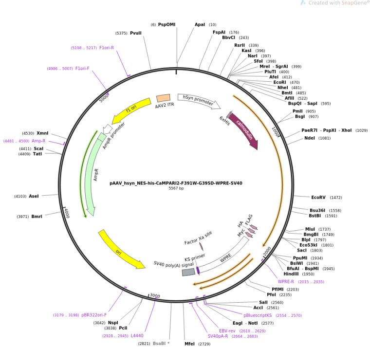 质粒名称:pAAV_hsyn_NES-his-CaMPARI2-F391W-G395D-WPRE-SV40