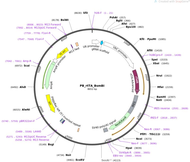 质粒名称:PB_rtTA_BsmBI