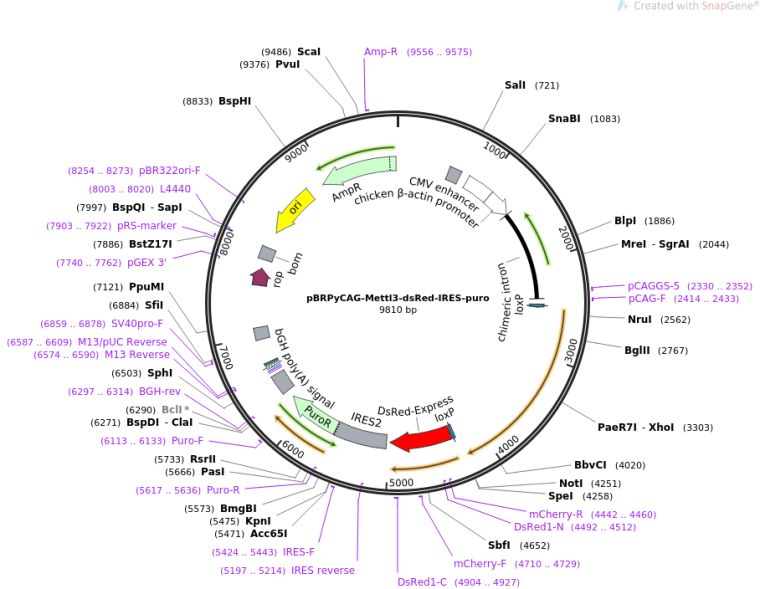质粒名称:pBRPyCAG-Mettl3-dsRed-IRES-puro