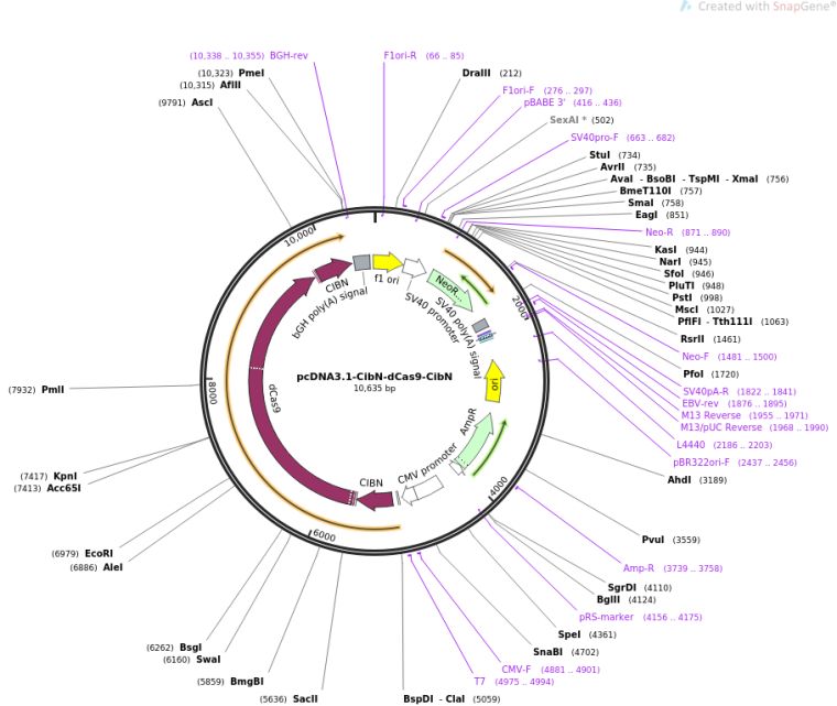 质粒名称:pcDNA3.1-CibN-dCas9-CibN