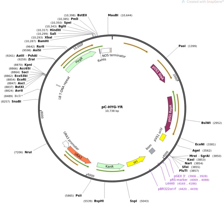 质粒备注:Yeast recombinational cloning compatible Agrobacterium tumefaciens ternary vector containing hygromycin selectable marker on transfer DNA (TDNA).