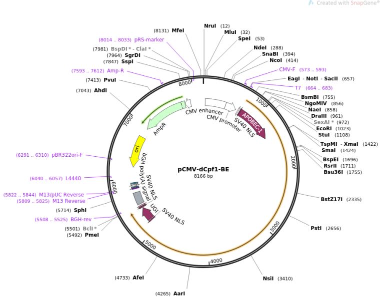 质粒名称:pCMV-dCpf1-BE