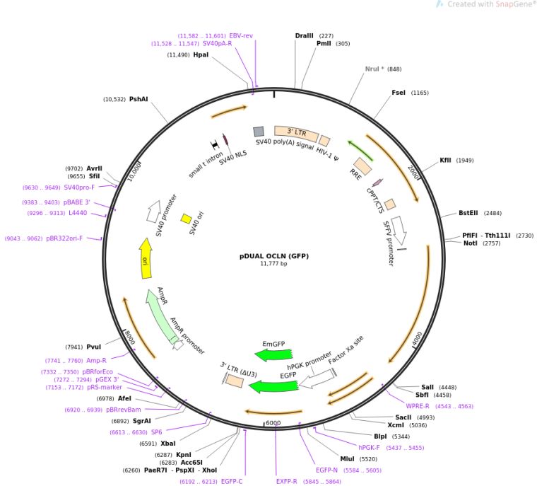 质粒备注:Lentiviral expression construct encoding Occludin and GFP from separate promoters