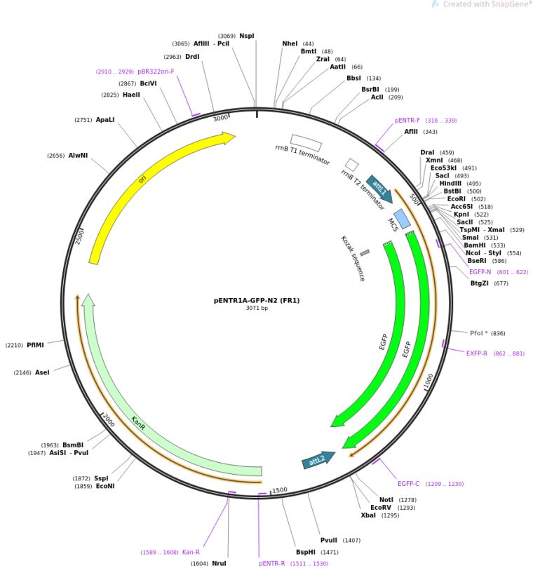 质粒名称:pENTR1A-GFP-N2 (FR1)