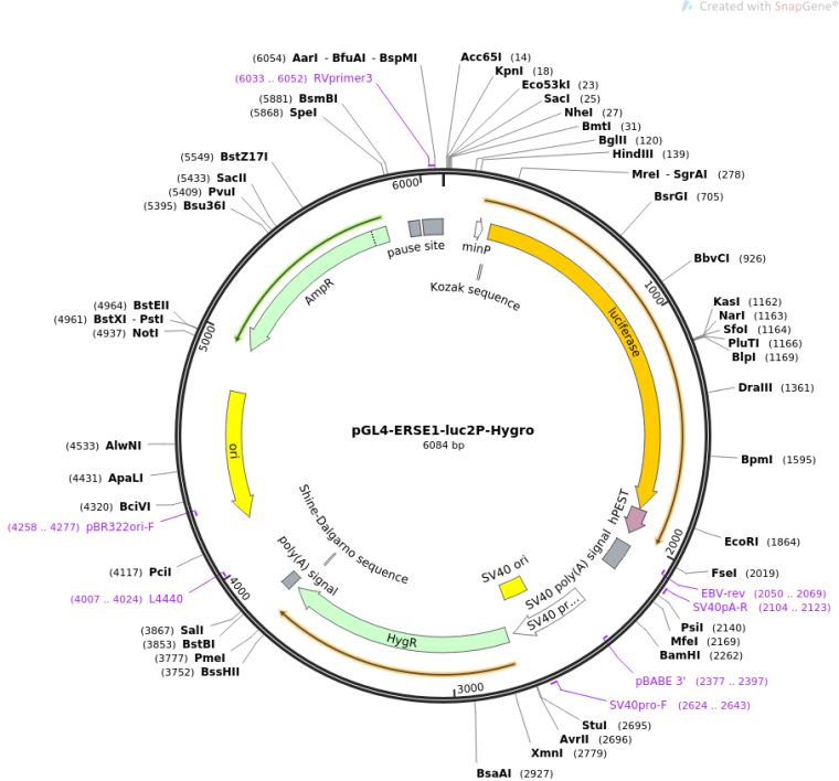 质粒名称:pGL4-ERSE1-luc2P-Hygro