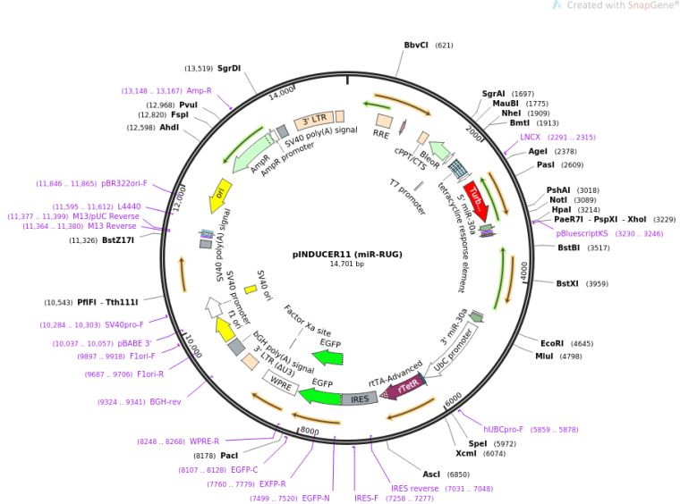 质粒名称:pINDUCER11 (miR-RUG)
