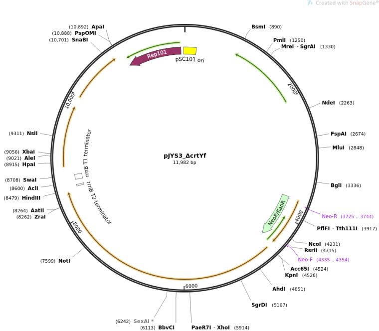 质粒名称:pJYS3_ΔcrtYf