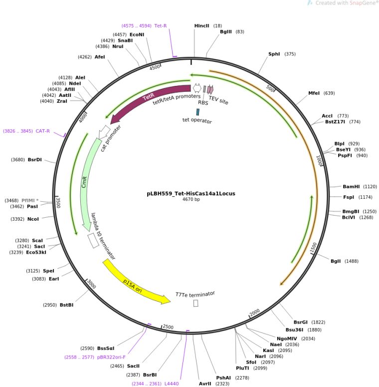 质粒名称:pLBH559_Tet-HisCas14a1Locus