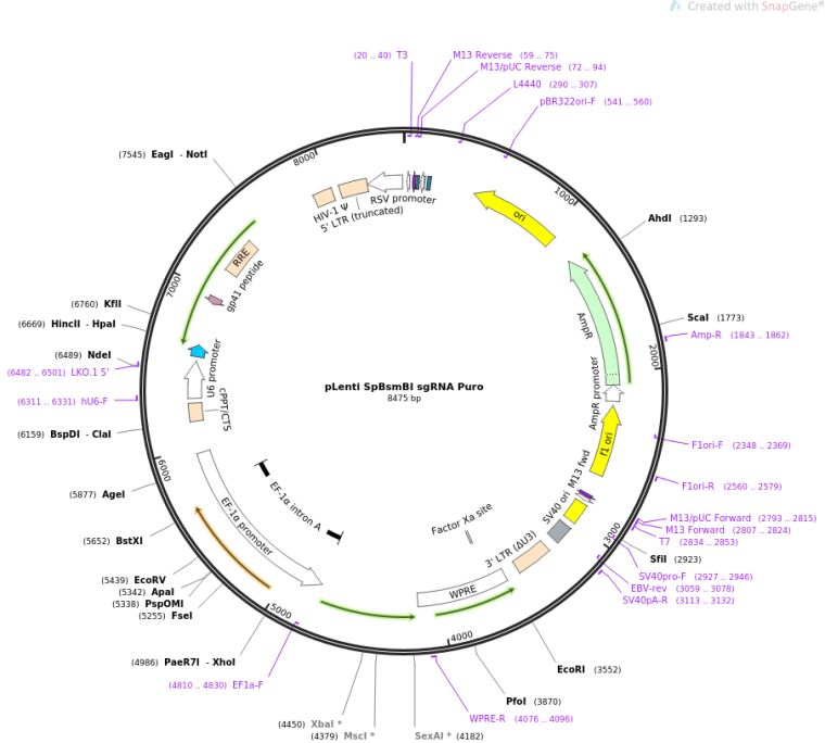 质粒名称:pLenti SpBsmBI sgRNA Puro