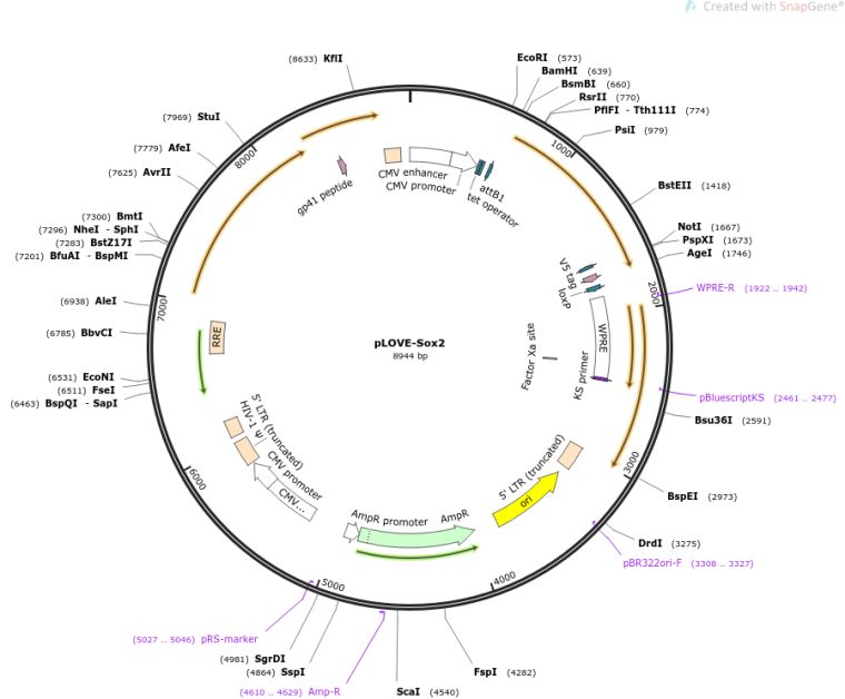 质粒名称:pLOVE-Sox2