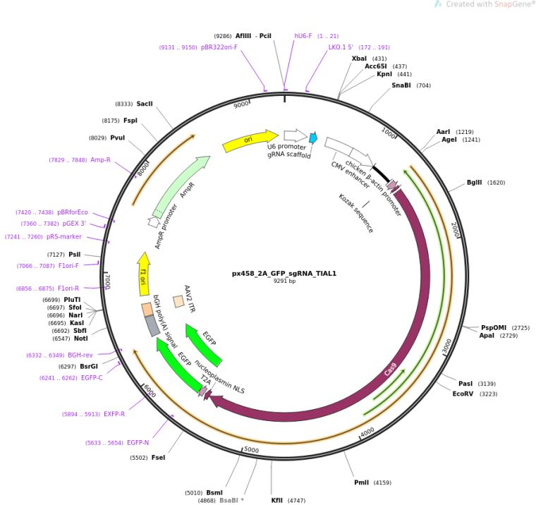 质粒名称:px458_2A_GFP_sgRNA_TIAL1