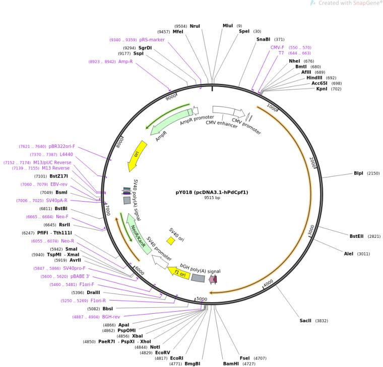 质粒名称:pY018 (pcDNA3.1-hPdCpf1)