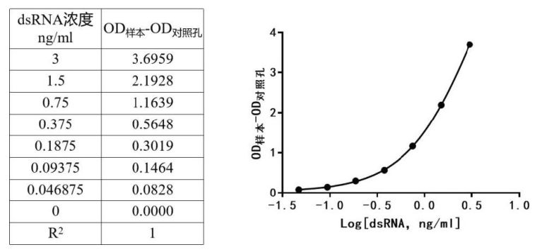 ▲当不能够确定待测样品中的dsRNA含量时,应当用样品稀释液做多个稀释倍数做检测,以免含量过高不能够读取有效数值。