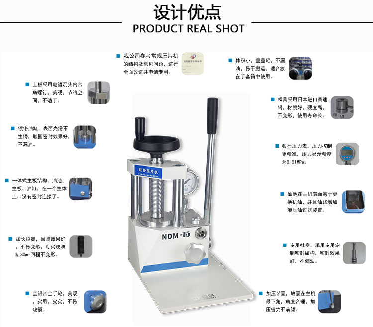 NDM-12红外压片机采用一体式结构,上压速度快,不漏油