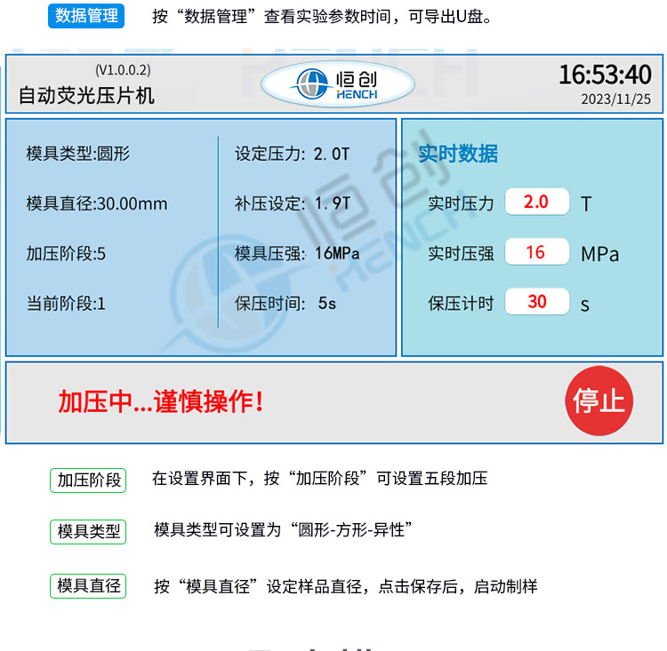 数据管理 可存储1万条历史操作记录,并可导出U盘