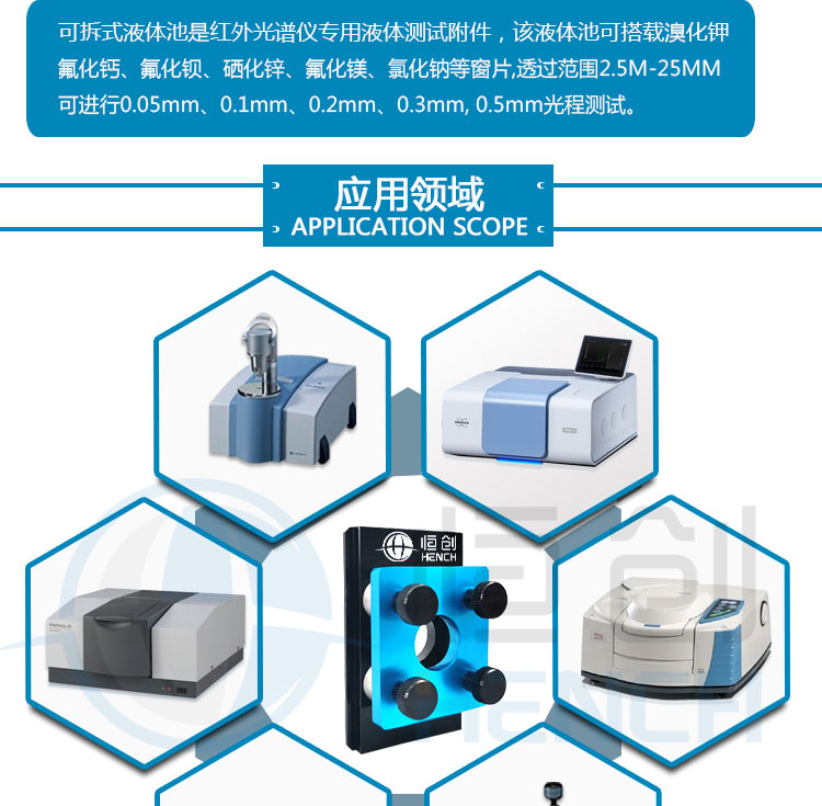 此款固定液体池配套光程有:0.1mm、0.2mm、0.3mm、0.5mmm。适用