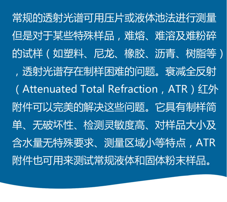 全反射(Attenuated TotalRefraction,ATR)红外附件可以**的解决这些问题