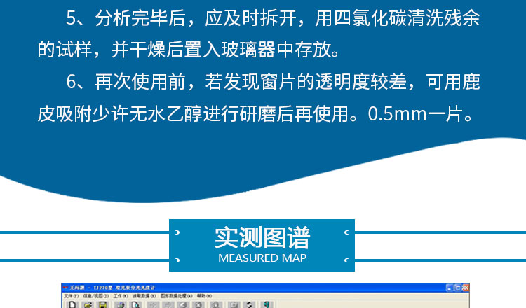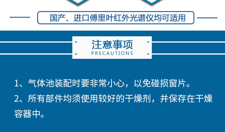 光程为100或50mm,如果有特殊需要,也可以配备CaF2,NaCl,ZnSe等窗片材料。