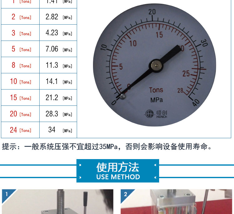 压力范围 0-24T(0-34.5Mpa)