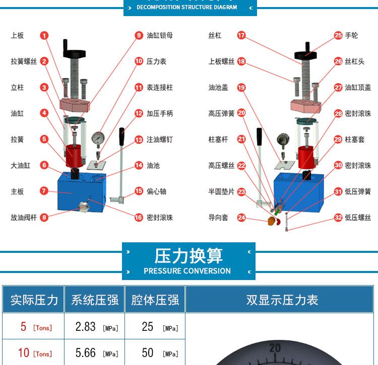 压力范围 0-60T(35Mpa)