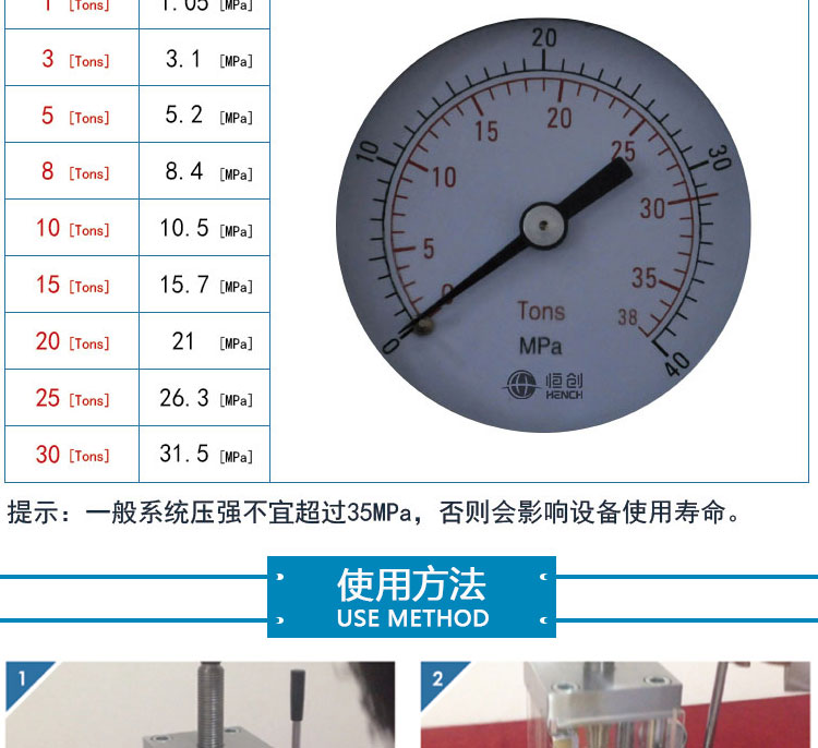 压力表 压力吨位(T)/压强兆帕(Mpa)双刻度显示