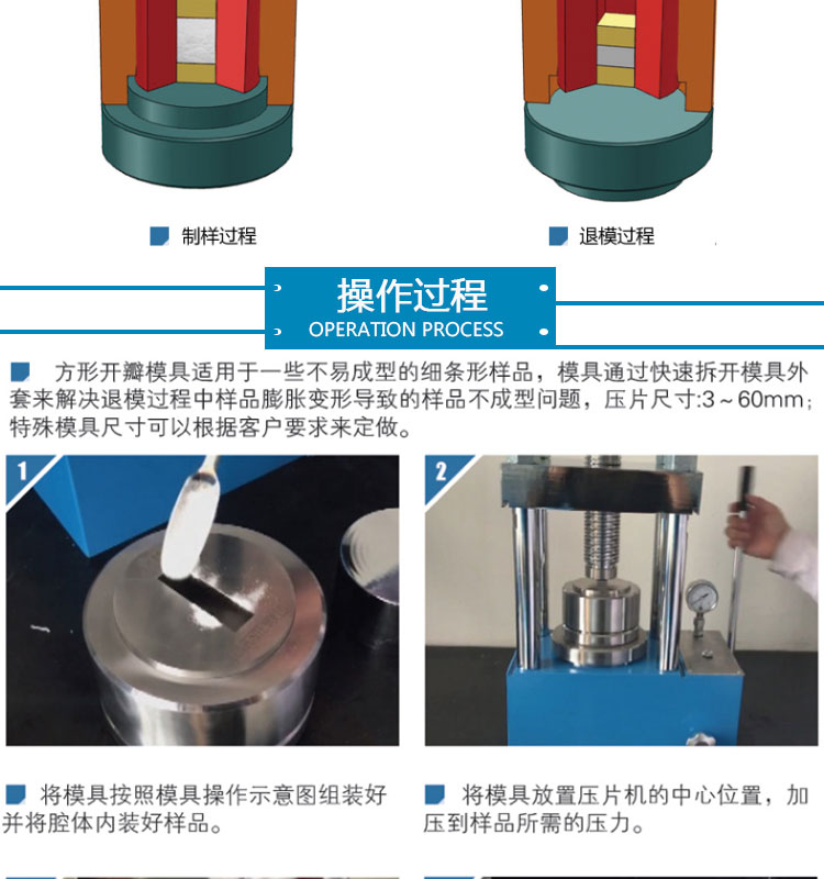 方形 / 长方形开瓣模具采用进口高速工具钢,表面光滑度高,硬度强。适用于材料科学
