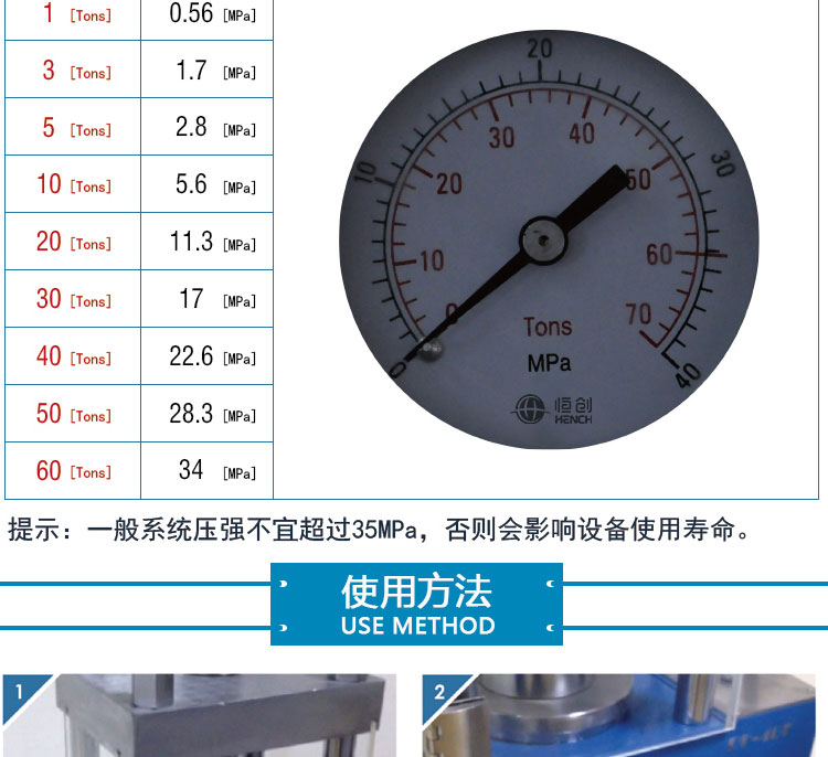 压力范围 0-60T(0-35Mpa)