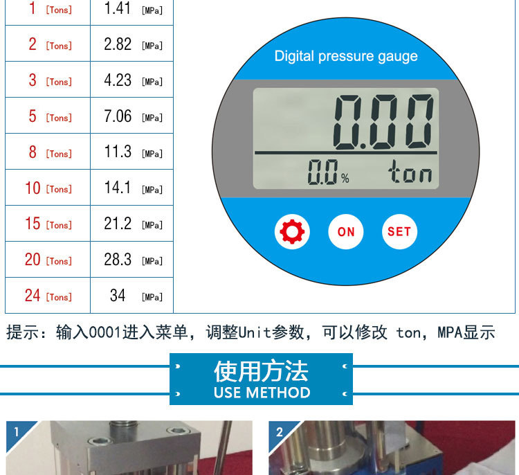 压力范围 0-24T(0-34.5Mpa)