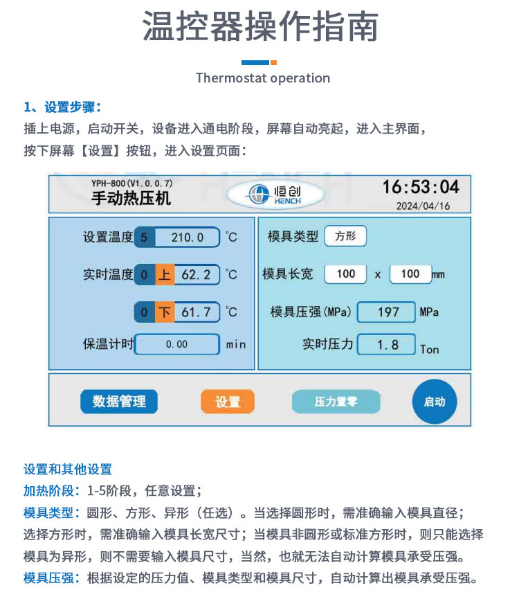 压强换算 PCB控制程序自动换算显示样品所承受压强(Mpa)