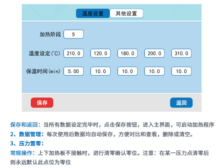 控温方式 5段可调连续/分段控温-自动升温-自动保温