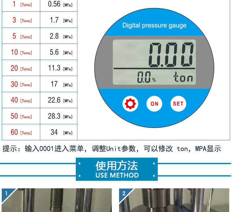 压力范围 0-60T(0-35Mpa)