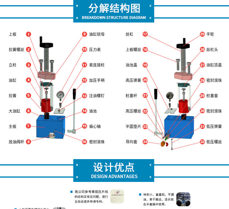 整体结构 手动液压制式,锻造工艺,一体式结构(搭载68号耐磨液压油)