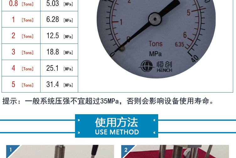 安全量程 0-5T(0-31.5Mpa)