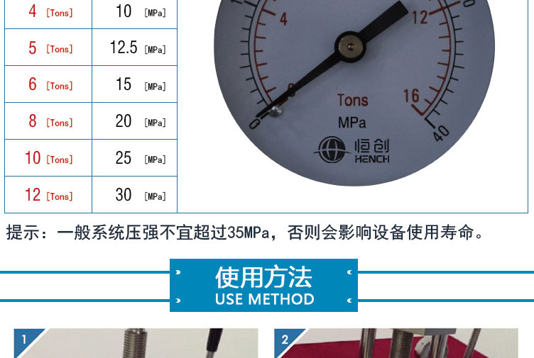 压力表最 大量程 0-20T(0-40Mpa)