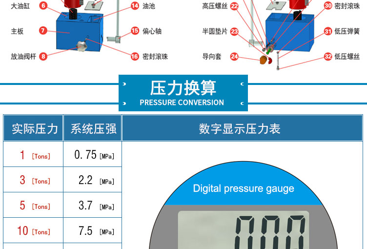 压力范围 0-40T(0-31Mpa)