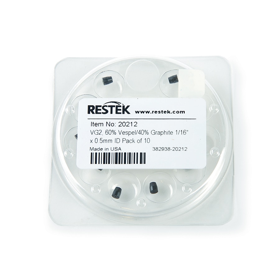 毛细柱卡套,Vespel/石墨,用于1/16英寸压缩型接头,VG2,60%Vespel/40%石墨,1/16英寸x 0.5 mm ID,10个/包