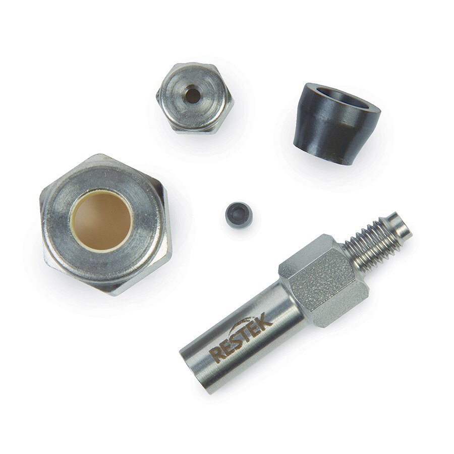 FID adaptor, large bore; 1/4" ferrule, Vespel/graphite; 1/4" nut, stainless steel; 1/16" nut, stainless steel; 1/16" ferrule, Vespel/graphite
