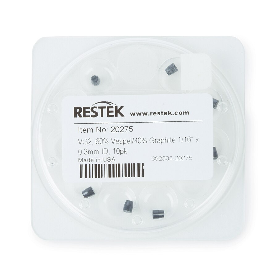 毛细柱卡套,Vespel/石墨,用于1/16英寸压缩型接头,VG2,60%Vespel/40%石墨,1/16英寸x 0.3 mm ID,10个/包