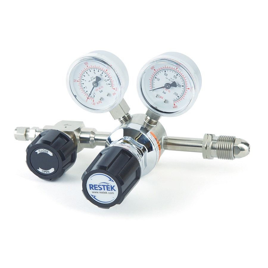 超高纯度黄铜减压阀适用于高纯度载气,用于使用质谱(MS)、光电离检测(PID)或电子捕获检测(ECD)等方法的高灵敏的气相色谱(GC)应用。与不锈钢外壳相比,它们具有较小的内部死体积。316L不锈钢隔膜阀确保无泄漏关闭。耐氧化的镀铬处理保持外观亮洁如新。