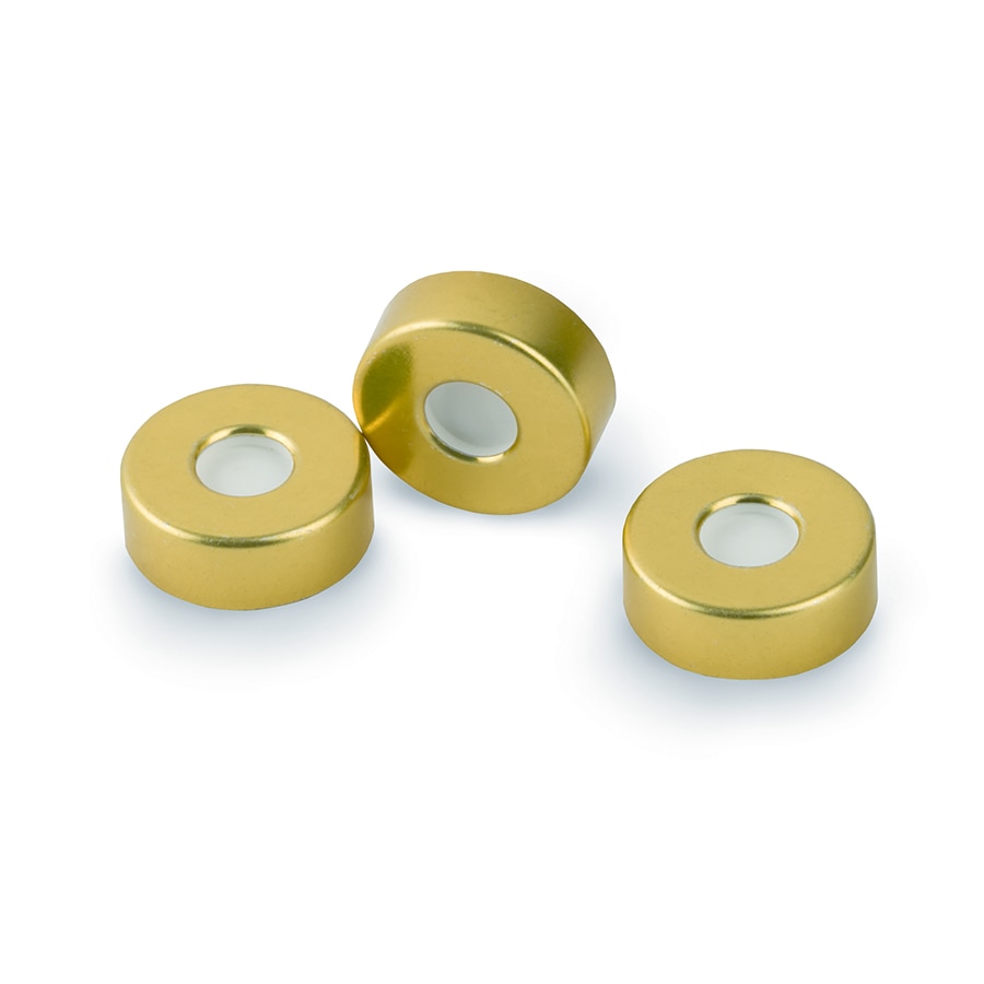 SPME小瓶盖,20 mm,金色,钢钳口,带MicroCenter PTFE/硅胶隔垫,100个装