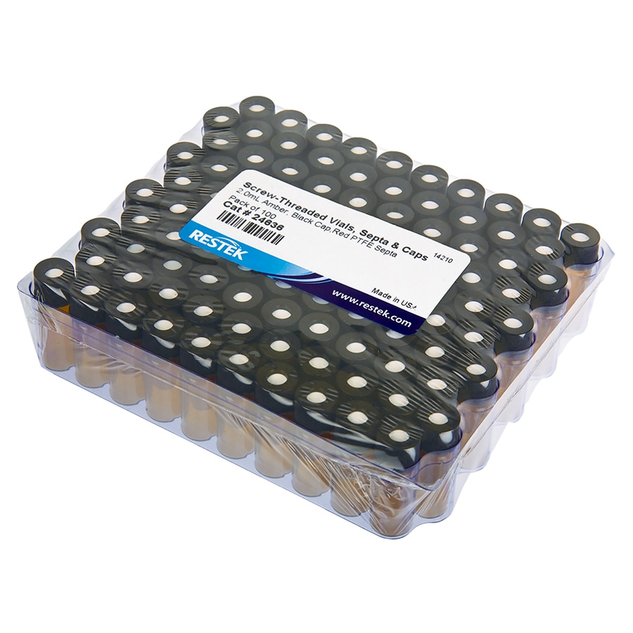 Amber 2.0 mL Vial, Black Cap, Red PTFE/Silicone Septa, 0.065"