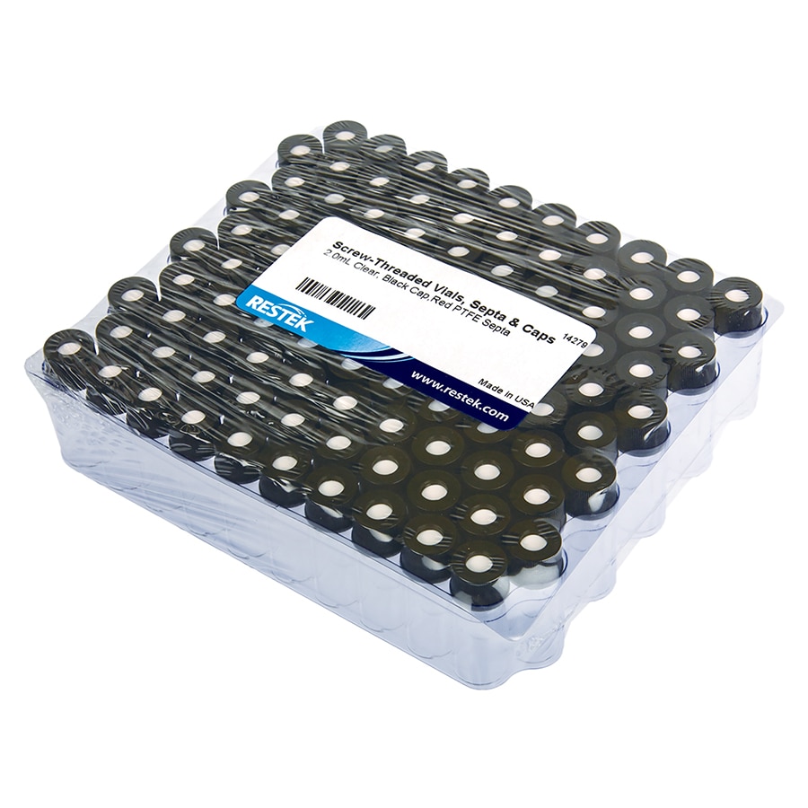 Clear 2.0 mL Vial, Black Cap, Red PTFE/Silicone Septa, 0.065"